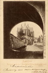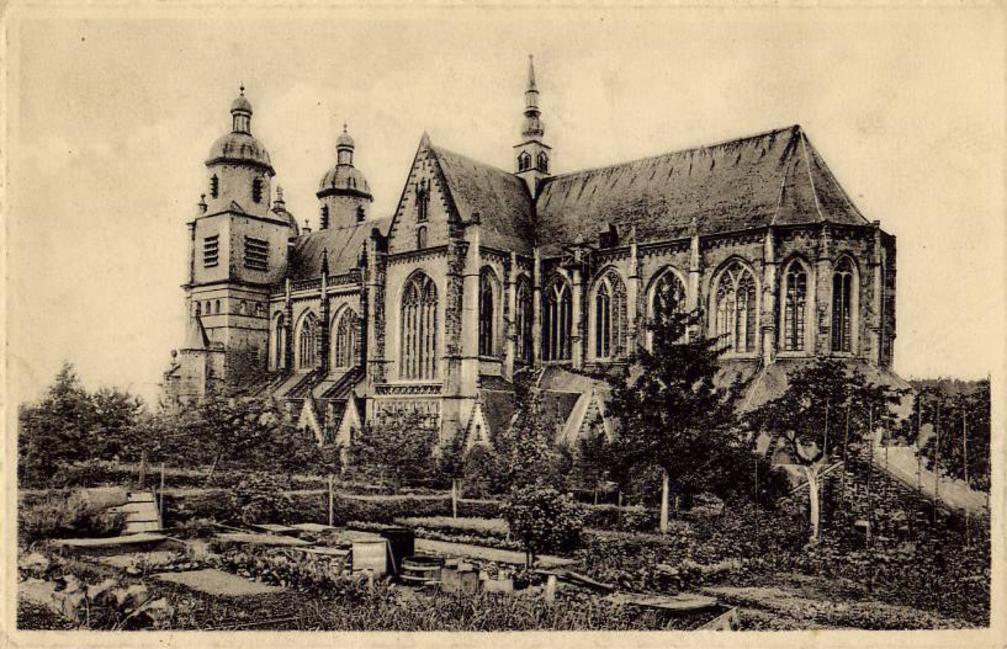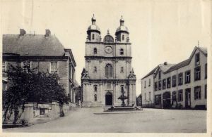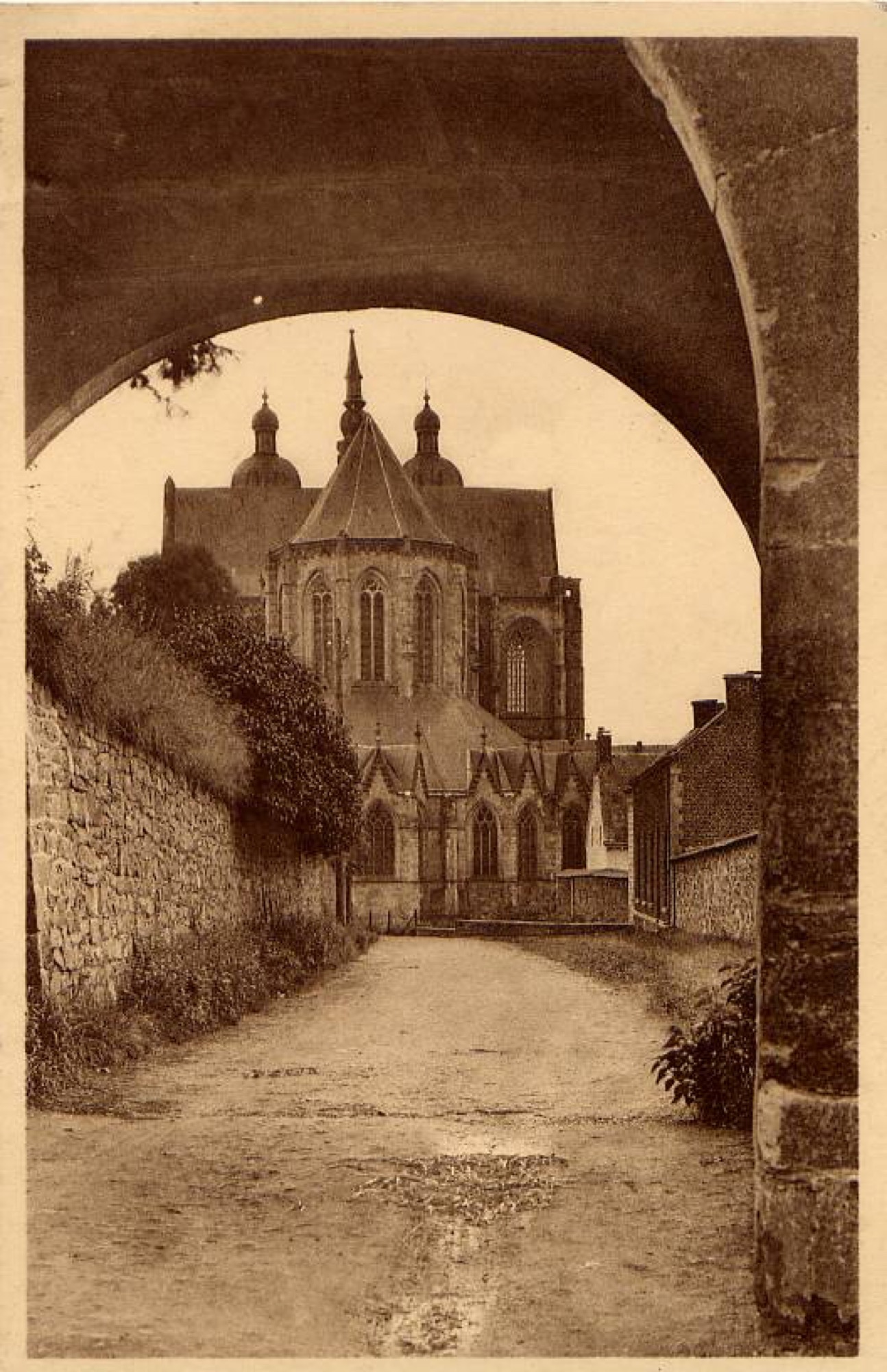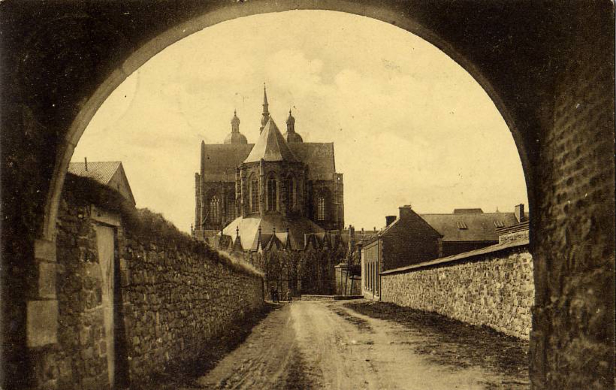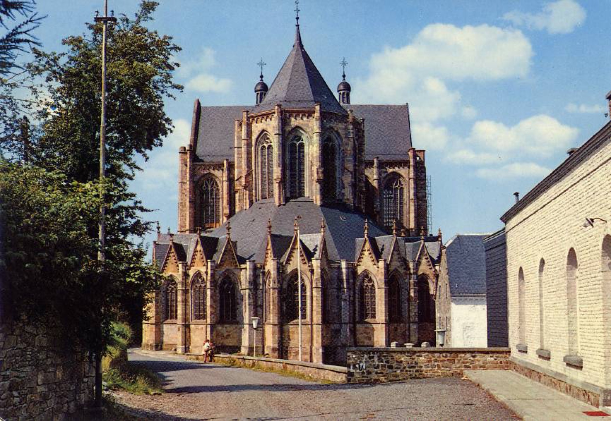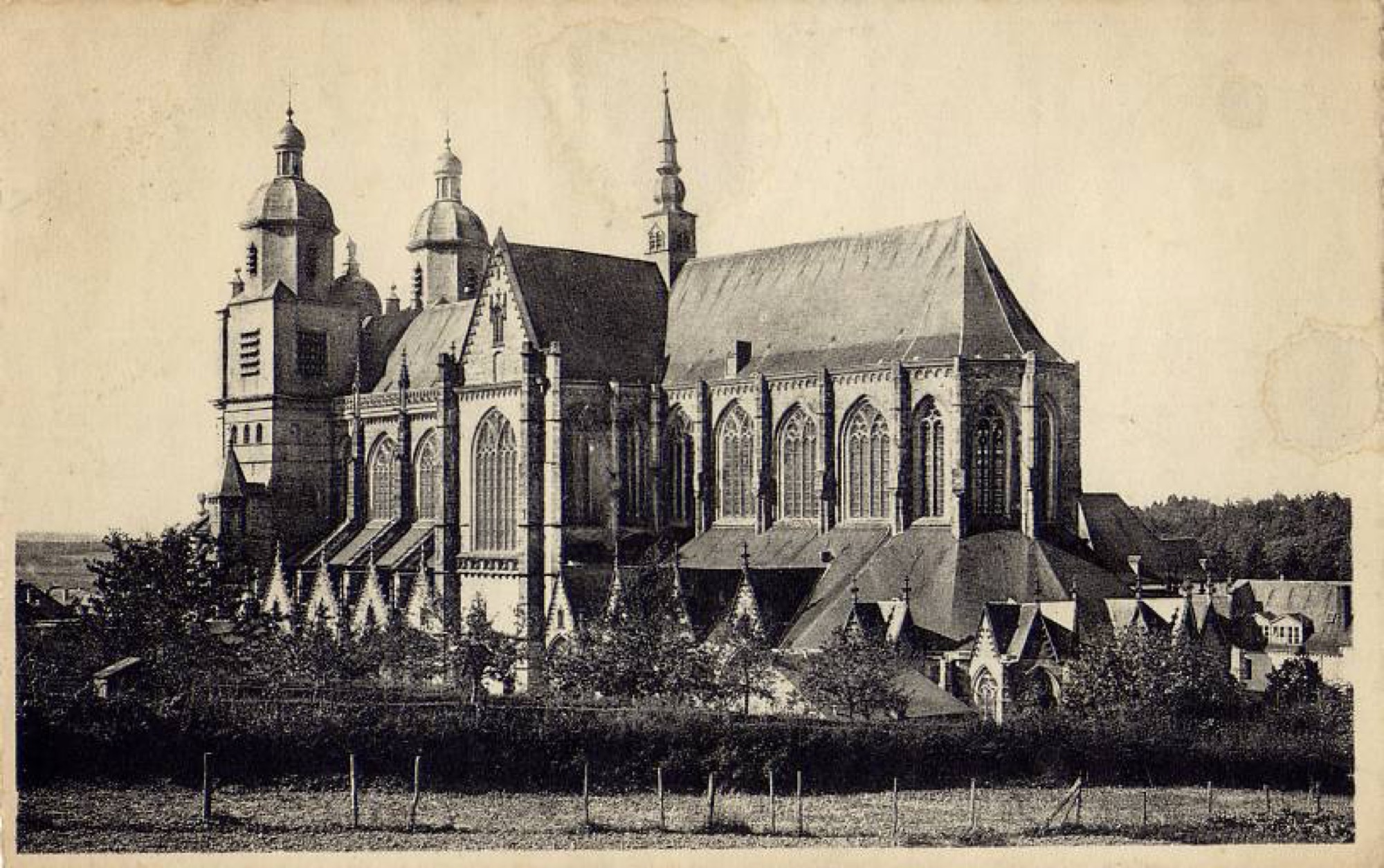 Haut lieu de pèlerinage depuis plusieurs siècles, elle n’est sans doute pas la première église à avoir été construite à cet endroit. En effet, plusieurs églises se sont succédé, la première datant du VIIe siècle tandis que l’édifice actuel, plus vaste que les précédents, a été construit au XVIe siècle, suite à l’incendie de 1525. En 1564, les huguenots pillent l’abbatiale en allumant des bûchers autour des piliers de la nef et du chœur. Il faut alors réparer tous les dégâts causés lors des guerres des religions. L’abbaye est vendue en 1797 et l’abbatiale est sauvée de la destruction en 1808. Elle s’élève au rang de basilique mineure en 1927 et, depuis 1996, fait partie du patrimoine exceptionnel de Wallonie.